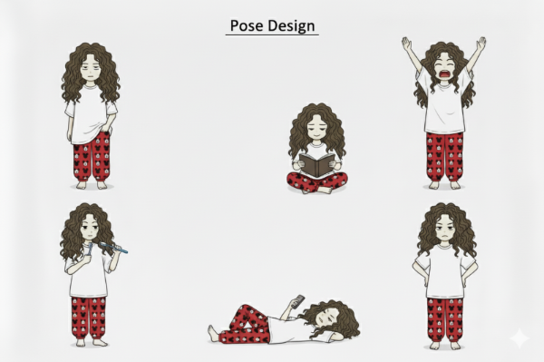 캐릭터 일상생활 속 코믹스러운 다양한 포즈 만들기