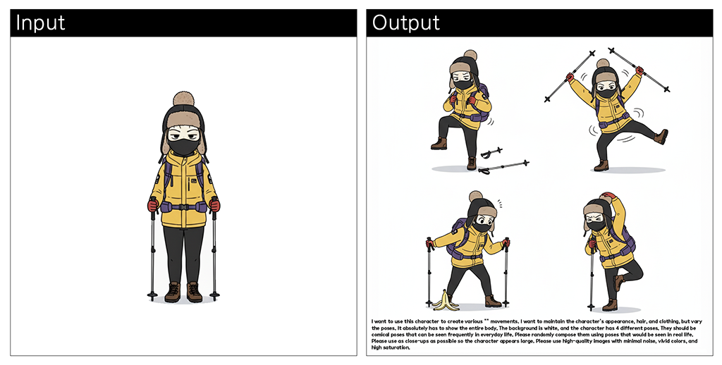 - 추출되는 캐릭터가 많으면 다양한 포즈를 한 번에 여러 개 얻을 수 있지만, 해상도는 떨어진다.